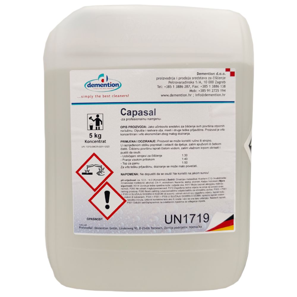 Capasal je višestrano sredstvo za čišćenje i zamjenjuje ostala različita sredstva.Odstranjuje brzo i efikasno sve vrste prehrambene prljavštine (krv, zagorene ostatke, šećer, proteini, bjelančevine i sl.). Sadrži specijalne emulgatore koji razgrađuju prljavštinu i odvodi ju, tako da cijevi ostaju čiste. Capasal sadrži 0.75% aktivnog klora, to je baktericid koji između ostalog pruža zaštitu od salmonele (capasal nije sredstvo za denzifekciju).